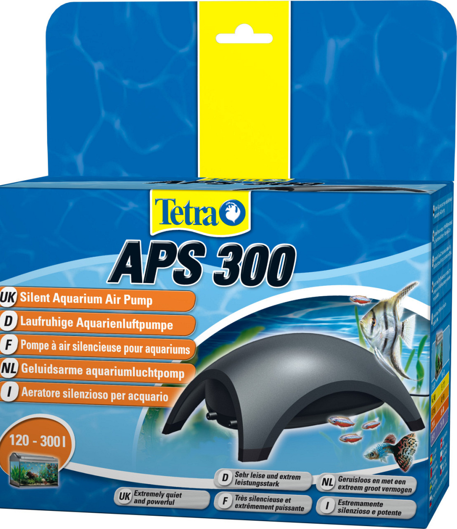 De Tetra luchtpomp APS 300 heeft een capaciteit van 300 liter per uur, en is geschikt voor aquaria tussen 120 en 300 liter. Alle Tetra luchtpompen beschikken over 2,5 mtr snoer. De pomp heeft een uiterst geruisloze werking door de innovatieve pompconstructie, de sterke kast en speciale, trilling absorberende rubberen doppen.