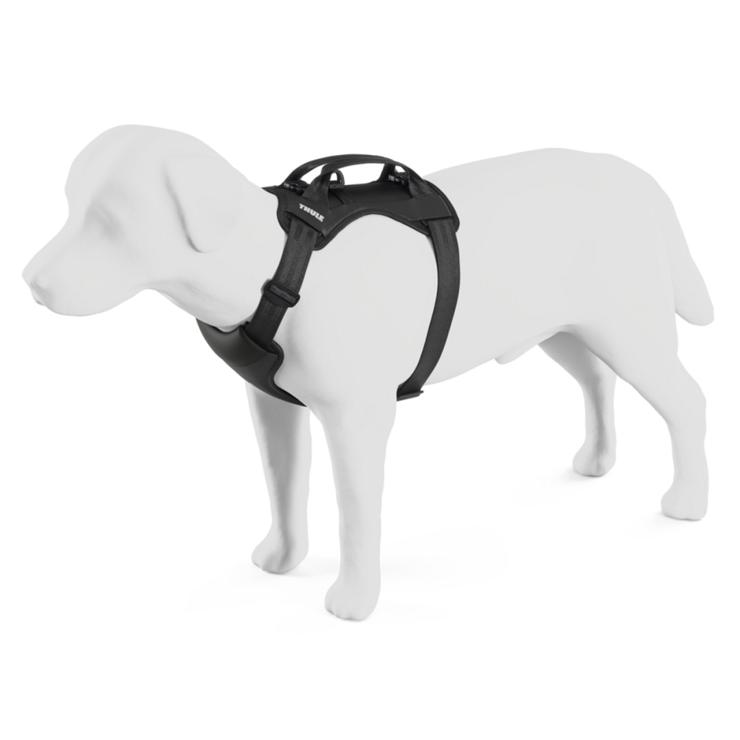Vervoer je hond veilig in de auto met het Thule Hondentuig Cappy. Het tuig hoeft niet over het hoofd van je hond te worden getrokken en is snel en comfortabel vast te maken. Met de speciale bandjes pas je de pasvorm makkelijk aan. Rijg eenvoudig de veiligheidsgordel door de achterste lussen om je hond veilig te houden in de auto, en voorwaartse beweging te minimaliseren voor extra veiligheid. Gewatteerde gaaspanelen bieden zachte ondersteuning en luchtstroom voor een comfortabele rit. De hondenriem kan aan het tuig bevestigd worden voor een korte wandeling tijdens een pauze. De gladde, 100% gerecyclede PU-gecoate stof is gemakkelijk schoon te maken.