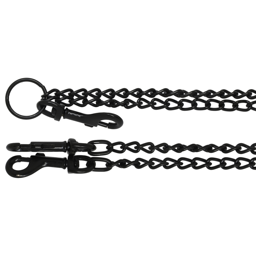 De ketting is gemaakt van sterk materiaal en heeft een dikte van 2 mm, wat zorgt voor betrouwbaarheid en duurzaamheid. De lengte van 50 cm per zijde biedt voldoende bewegingsvrijheid voor je hond, terwijl hij toch goed op zijn plek blijft. Perfect voor ontspannen en zorgeloze ritten samen met jouw trouwe viervoeter.