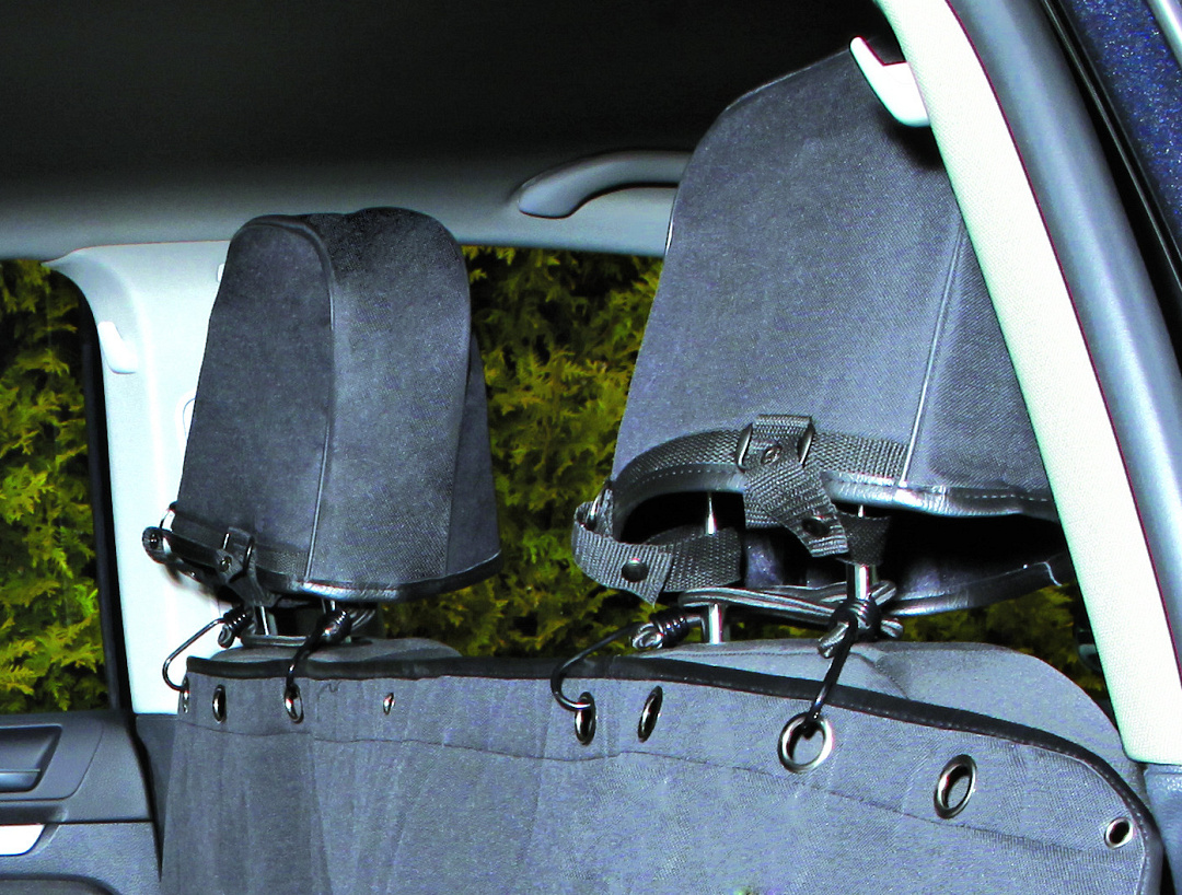 Katoenen en polyester autodeken die de achterbank en hoofdsteunen beschermt tegen vuil. Afm. 145 x 160 cm.