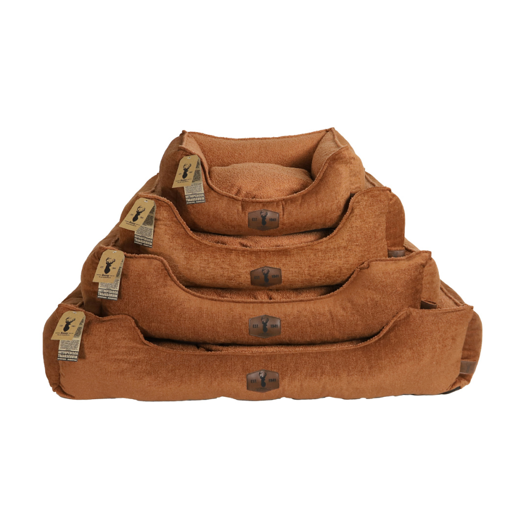 Deze Boony EST 1941 orthopedische hondenmand uit de premium range behoort tot de beste manden welke je voor jouw hond kunt aanschaffen. Deze mand biedt optimale ondersteuning aan de spieren en gewrichten van jouw hond. De stevige vulling van traagschuim draagt bij aan een orthopedisch verantwoorde (nacht)rust. Door zijn eigen lichaamsgewicht zakt je hond licht weg in het traagschuim. Drukpunten worden geneutraliseerd waardoor een orthopedisch correcte uitlijning van de wervelkolom ontstaat. Het kussen van deze mand is voorzien van 2 verschillende stoffen. Dit geeft je de mogelijkheid het kussen om te draaien waardoor het kussen direct een andere uitstraling krijgt. Hierdoor kun je zelf jouw favoriete uitstraling kiezen. De combinatie van de twee stoffen geven de divan een stijlvolle uitstraling die gemakkelijk in te passen is in allerlei interieurs.