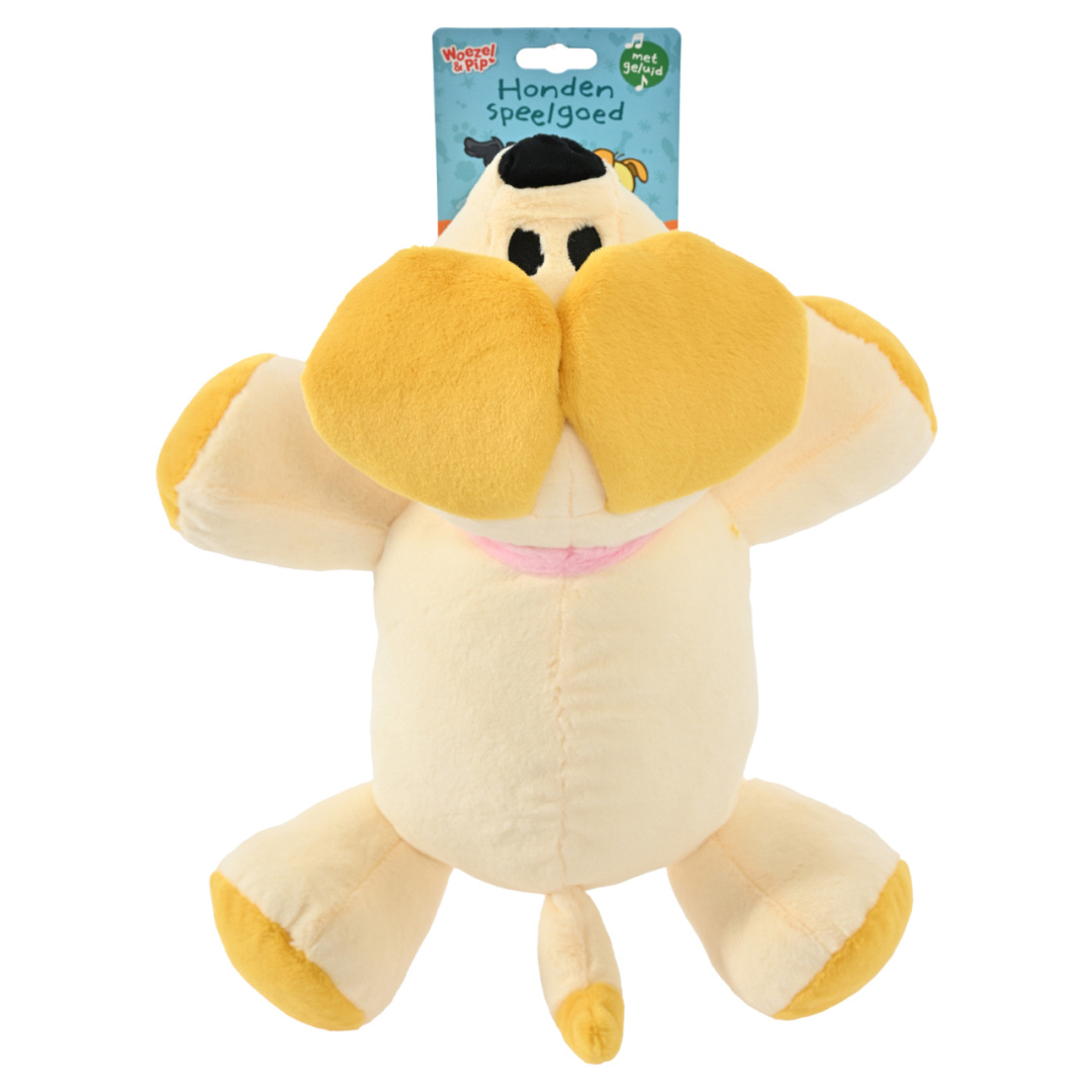 Laat je hond wegdromen met zijn nieuwe Woezel & Pip hondenspeeltje: de grote pluchen Pipknuffel! Deze liggende knuffel is niet alleen heerlijk zacht, maar ook een volwaardig hondenspeeltje met een ingebouwde pieper voor extra speelplezier. Perfect voor rustige dutjes en vrolijke speelmomenten!