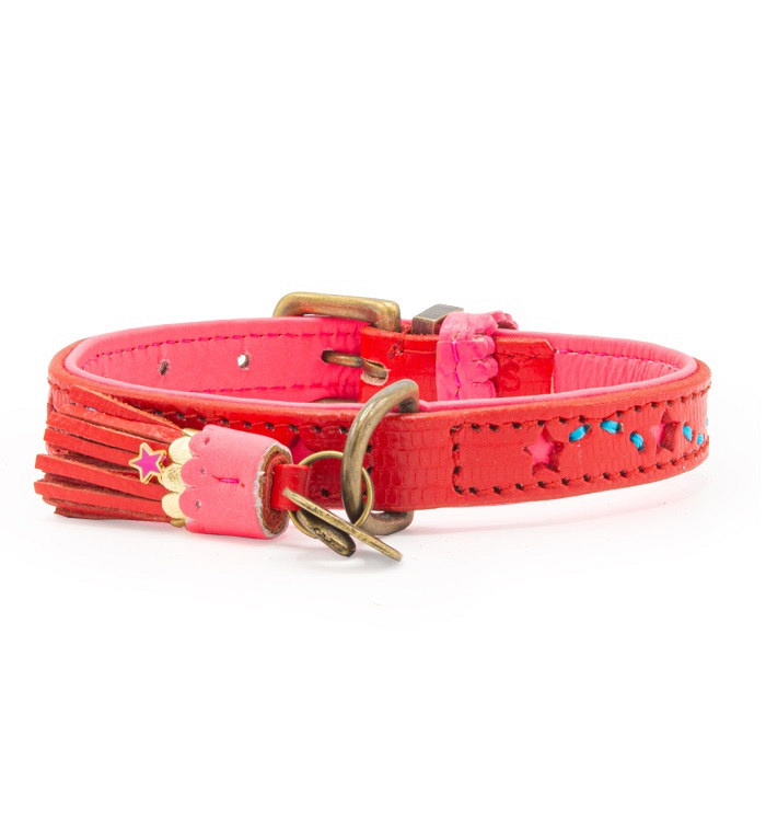 De kleurrijke Dog with a Mission halsband Pink Star is een vrolijk rood met roze halsband, afgewerkt met sterren en gestikt design. Speciaal voor supersterren! Van de blauwe weg tussen de sterren, tot de hagedissenprint en het gouden hangertje. Deze halsband is écht speciaal!