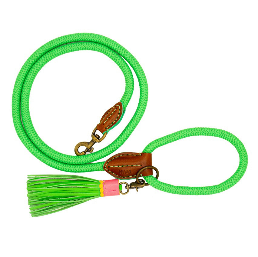 De opvallende Dog with a Mission hondenlijn Apple Pie is echte eyecatcher! De riem is gemaakt van stevig polyester touw waardoor hij tegen een stootje kan. De riem is afgewerkt met echt leer en aan iedere riem hangt een uniek bedeltje.