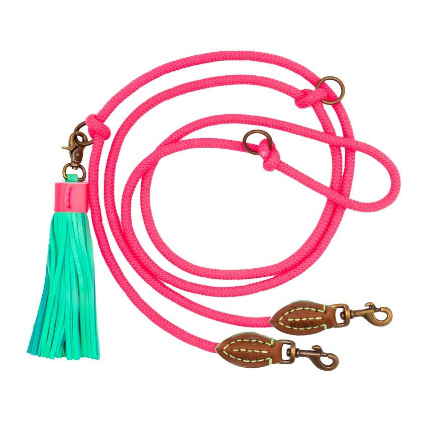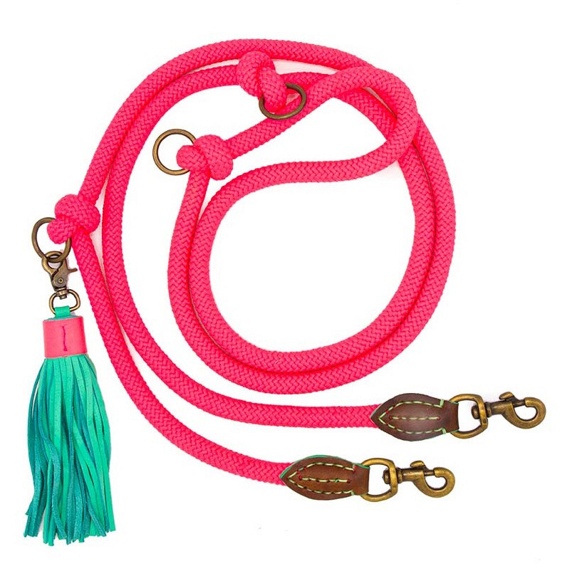 Dog with a Mission Hondenlijn Extra Lang Sugarbabe springt in het oog, en dat is precies de bedoeling! De riem is door middel van de metalen ringen gemakkelijk in te korten. Maximaal is de riem zo’n 220 cm, maar deze is ook in te stellen op 180 of 140 cm. Zo is er altijd een perfecte lengte te vinden.