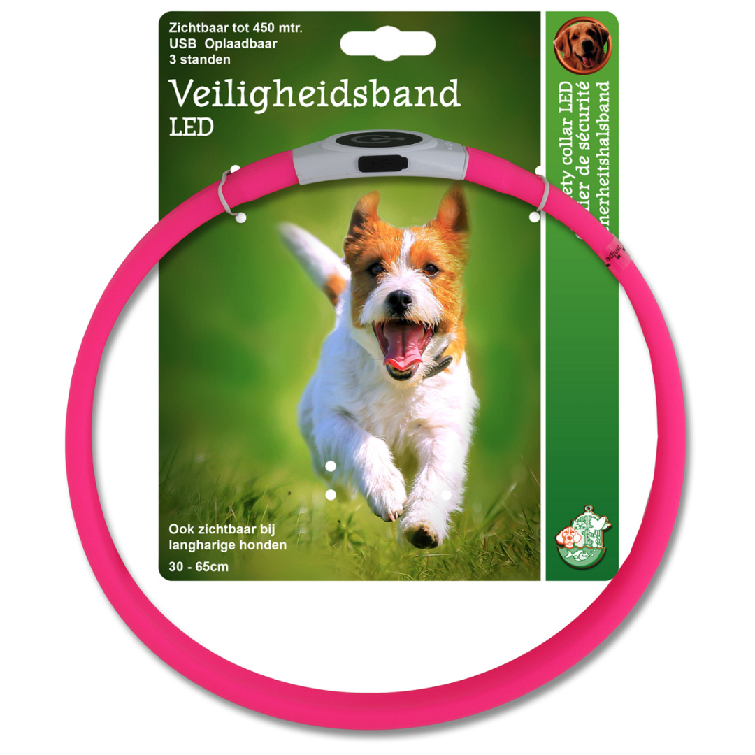 Veiligheidshalsband LED Verstelbaar Roze 25 - 65 x 2,5 cm