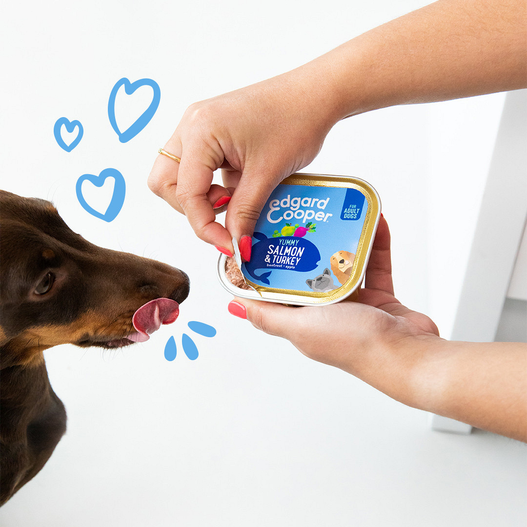 Edgard & Cooper hondenvoer Adult Zalm en Kalkoen is gemaakt met een graanvrij recept en zit boordevol evenwichtige en makkelijk verteerbare eiwitten. Vis is een fantastische bron van omega 3-vetzuren, die de vacht van je hond zacht en glanzend helpt houden.