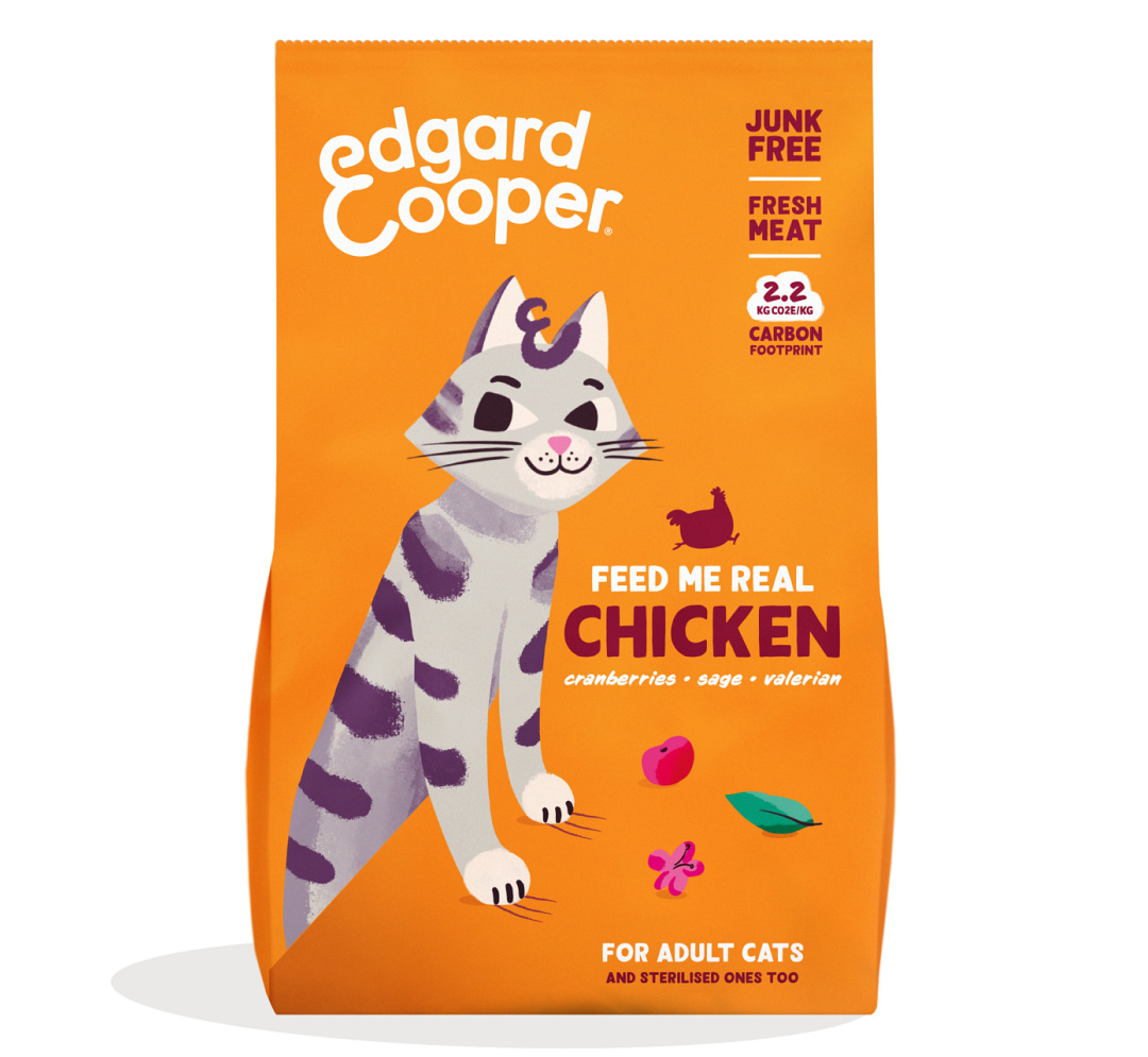 Edgard & Cooper kattenvoer Adult Kip is een volledige voeding van graanvrije, krokante brokjes met verse vrije-uitloopkip. Echt eten en geen junkfood: ideaal voor volwassen katten, ook als ze gesteriliseerd zijn. Ze zitten boordevol vers vlees zonder kunstmatige of tot poeder verpulverde toevoegingen en zonder toegevoegde suiker.