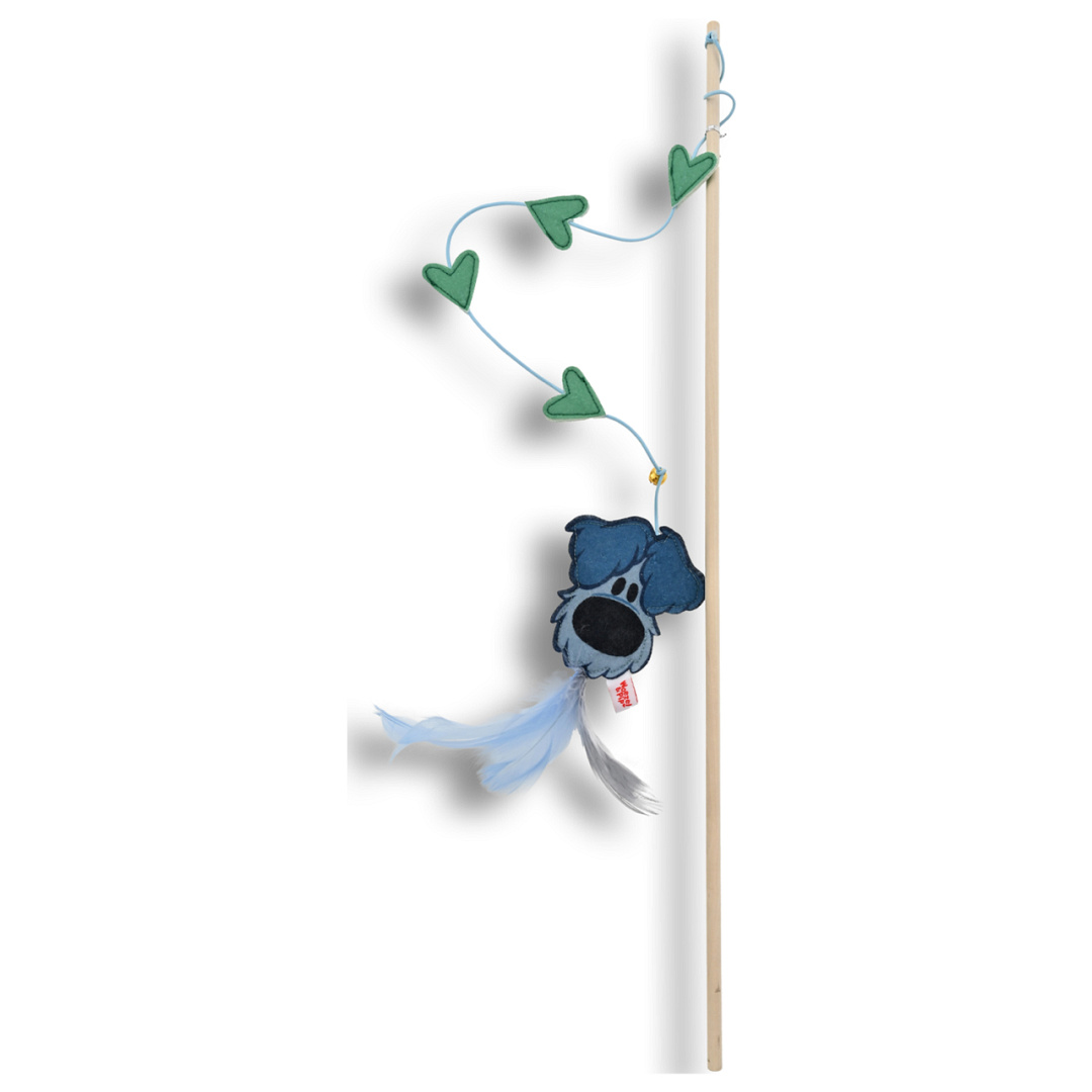 De Woezel & Pip kattenhengel is speciaal ontworpen om het natuurlijke jachtinstinct van jouw kat op een leuke en veilige manier te stimuleren, terwijl ook het contact tussen kat en baasje versterkt wordt. Aan het elastiek hangt een zacht en lichtgewicht Woezel-hoofdje, speels gecombineerd met vrolijke hartjes en een metalen belletje dat bij elke beweging rinkelt. Dit zorgt voor een boeiend visueel en auditief effect, waardoor jouw kat keer op keer wordt uitgedaagd om te springen, grijpen en spelen.
