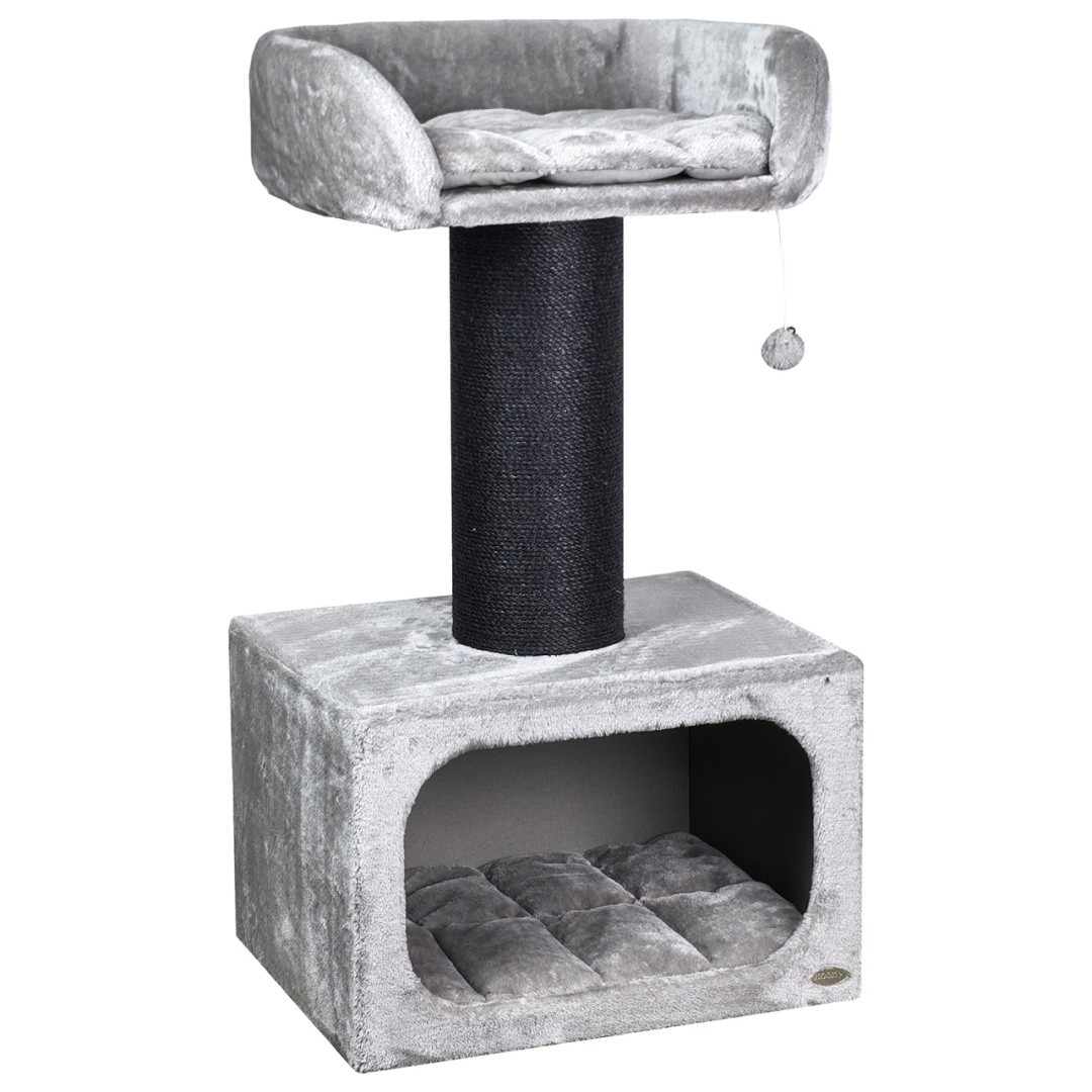 Onderin bevindt zich een zeer ruime schuilplaats, voorzien van een zeer comfortabel uitneembaar en wasbaar kussen, waar jouw kat zich kan terugtrekken voor een welverdiend rustmoment na een speelsessie. Bovenop bevindt zich een comfortabele ligplaats met een afneembaar en wasbaar kussen, waar je kat heerlijk kan ontspannen en alles in de gaten kan houden.