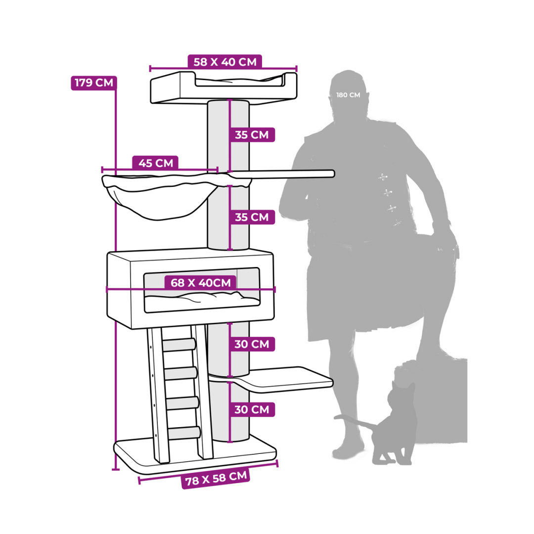 Extra groot krabmeubel. Ook geschikt voor grote, zware katten of senioren. Afm. 78 x 58 x 179 cm.